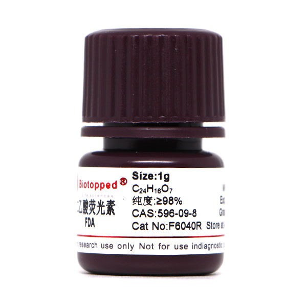 用途:本品仅供科研,不得用于其它用途。(以下用途仅供参考)酯酶底物,用于组织化学检验。荧光基质。活细胞染色,用作细胞内相互作用及其(细胞)膜渗透性的研究。FDA可透过细胞膜并作为荧光素积蓄在活细胞内.由于荧光素较BCECFCalcein的亲水性低,因此荧光素从细胞中渗漏的量也高。FDA也可用于流式细胞仪。荧光素的激发和发射波长分别为488nm530nm