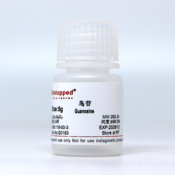 中文别名 鸟嘌呤核苷;鸟嘌呤核甙;9-β-D-呋喃核苷鸟嘌呤;9-β-D-呋喃核糖基鸟嘌呤;鸟甙;鸟粪苷;鸟粪素苷;鸟嘌呤呋喃核苷