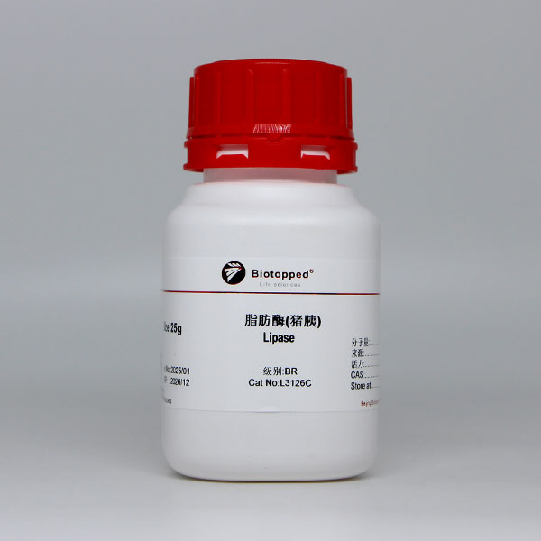 外观(性状) 类白色或淡黄色属脂肪加水分解酶类,和蛋白酶、淀粉酶并称三大水解酶类。最适温度35~37℃。酶反应:甘油三酯+H2O=甘油二酯+脂肪酸阴离子。对一级酯基团最易水解。甘油单酯是差的底物。有两个差不多相同的同工酶脂肪酶: A与B。等电点(pI)A为4.9、 B为5.0。吸光系数(E1%280)13.3。激活剂为钙(CA2+)。