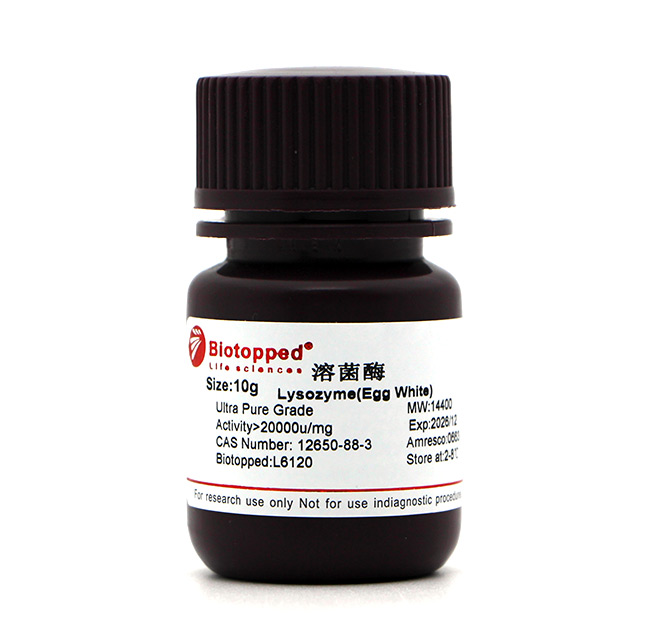 说明: 生化研究;溶菌酶可用于水解革兰氏阳性菌和革兰氏阴性菌的细胞壁。溶菌酶对革兰氏阳性菌、好气性孢子形成菌、枯草杆菌、耐辐射微球菌均有良好的分解作用,对大肠杆菌、普通变球菌和副溶血性弧菌等革兰氏阴性菌也有一定程度的溶解作用。溶菌酶具有分解细菌细胞壁中肽聚糖的特殊作用。 来源于:鸡蛋清