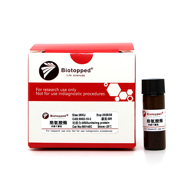 外观(性状) 粉末。一类可催化含酚基化合物(如酪氨酸、酚类化合物等)氧化成醌的酶。此类酶广泛存在于自然界,植物中分布很广,如马铃薯、茶叶、漆树乳汁中含量相当高。高等动物的皮肤、毛发、角膜中的黑色素也是由于此酶氧化酪氨酸所生成的产物。蘑菇等菌类及其他微生物中也产生此类酶。通常从野蘑菇中提取,系生物催化剂之一,含有铜离子的蛋白质