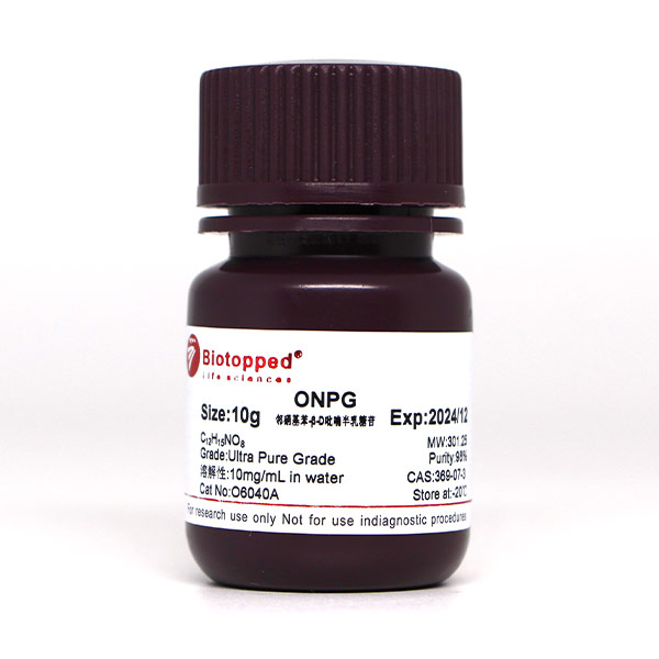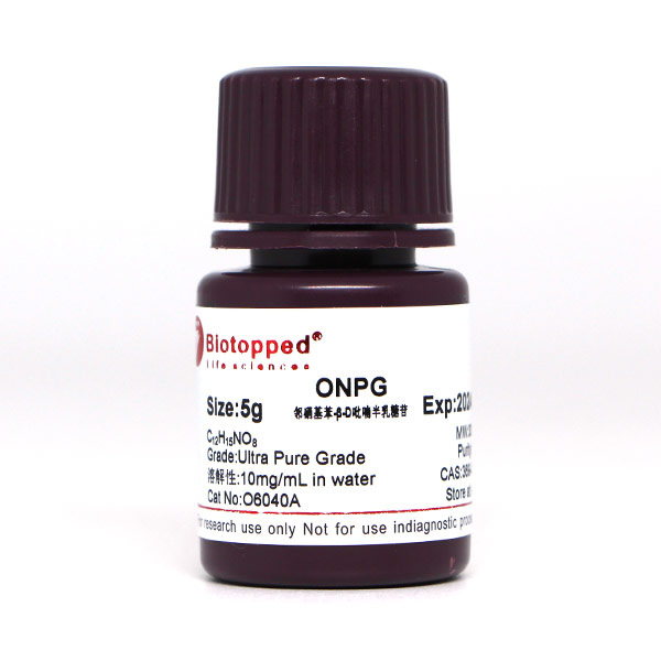 产品介绍: 作为测定β-半乳糖苷酶的底物。经β-半乳糖苷酶催化后可产生黄色产物,在410-420nm波长可以检测吸光度。