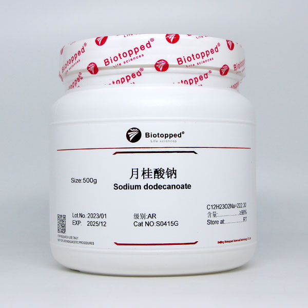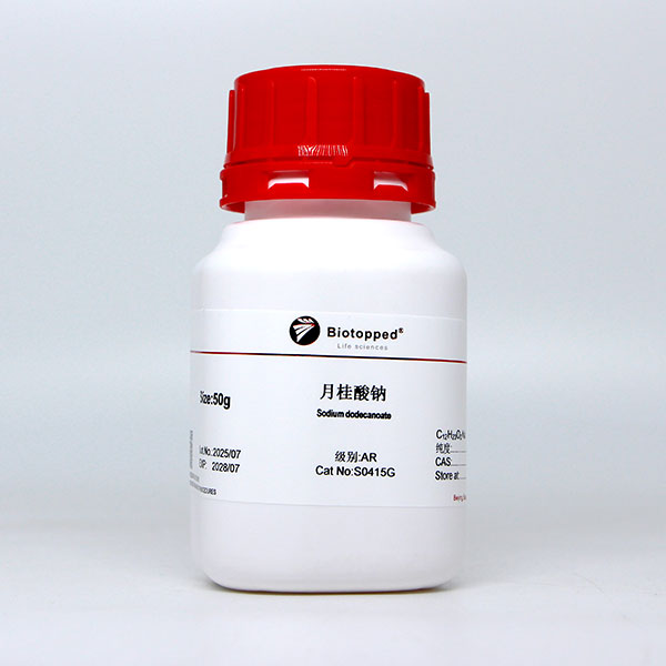 外观(性状) 白色粉末状结晶。易溶于水,微溶于醇、醚等有机溶剂。由月桂酸与氢氧化钠溶液反应制得。