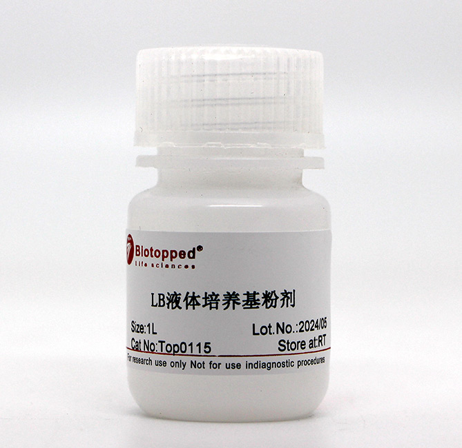 产品介绍: LB培养基是一种培养基的名称,生化分子实验中一般用该培养基来预培养菌种,使菌种成倍扩增,达到使用要求。培养的菌种一般是经过改造的无法在外界环境单独存活和扩增的工程菌.通过培养工程菌,我们可以表达大量的外源蛋白,也可以拿到带有外源基因的质粒,工程菌的有效扩增是生化分子实验的基础。 配方:胰蛋白胨10g,酵母提取物 5g , NaCl 10g。使用时加入1000ml水,高压灭菌。