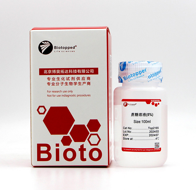 蔗糖化是光合作用的产物,可作为食品添加剂。蔗糖溶液(5%)主要由蔗糖、去离子水组成,可用于组织脱水或其他用途,是一种非常重要的辅助试剂。