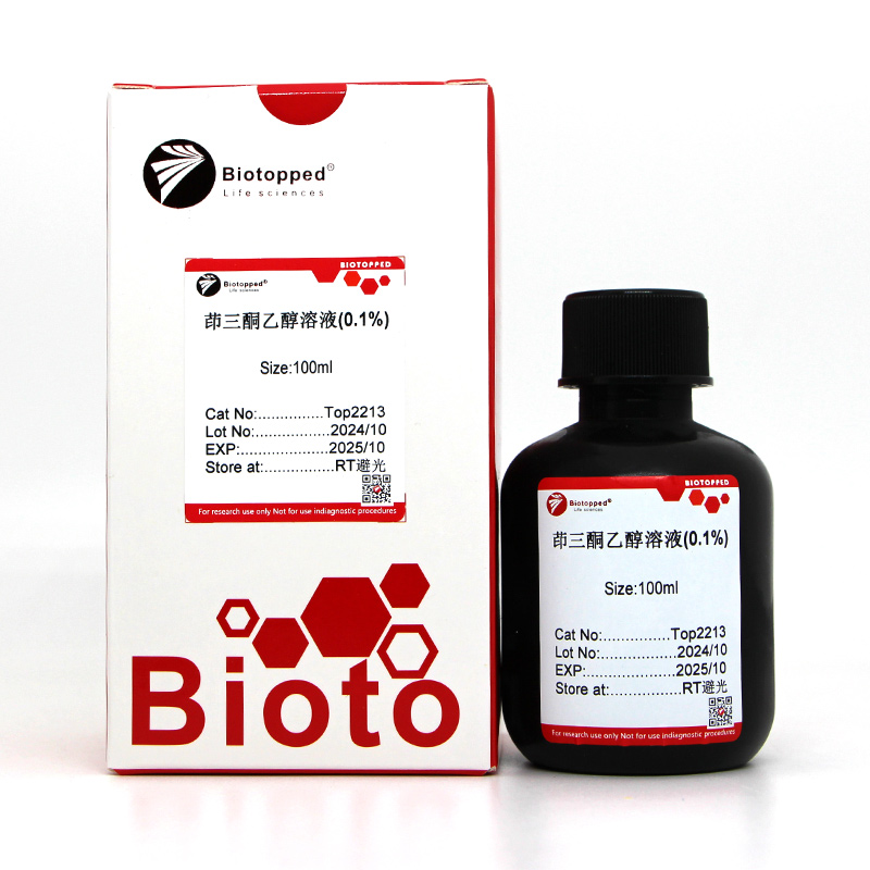 茚三酮乙醇溶液(0.1%)反应原理是氨基酸被氧化形成CO2、NH3、醛,水合茚三酮被还原成还原型茚三酮,后者与另一个水合基本分子和氨缩合形成蓝紫色物质。本试剂仅用于科研领域,不宜用于临床诊断或其他用途。