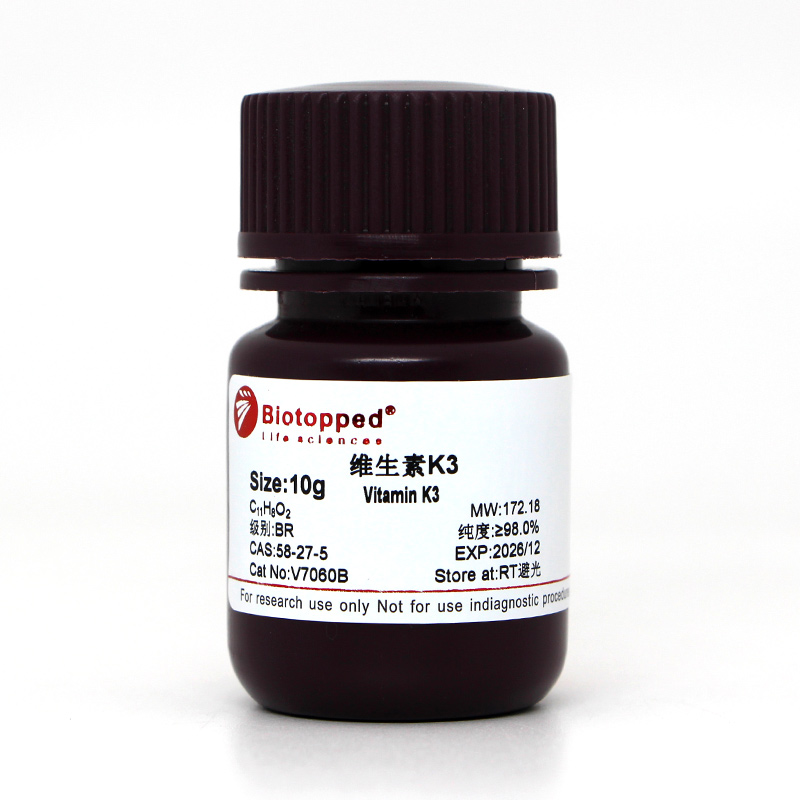 性状(以下信息仅供参考):嫩黄色结晶或白色粉末,有极微辛辣的气味。在空气中稳定,在日光中分解。1G溶于约60ml乙醇、10ml苯、50ml植物油,溶于氯仿和四氯化碳。不溶于水。乙醇溶液对石蕊试纸呈中性。溶液在热至120℃也不分解。遇碱和还原剂则被破坏。有毒,半数致死量(小鼠,经口)约500mG/kG。有刺激性。商品尚有亚亚硫酸氢钠甲萘醌,为白色结晶性粉末。无气味或微有特殊气味。有吸湿性。遇光易分解并变成黄色或紫色。易溶于水,微溶于乙醇,几乎不溶于乙醚和苯。