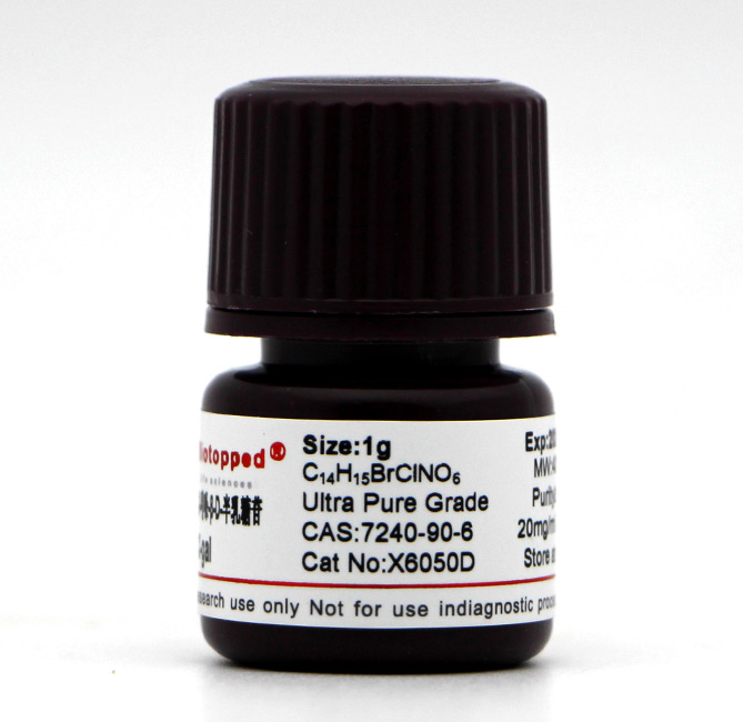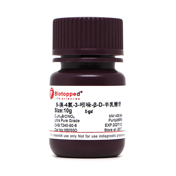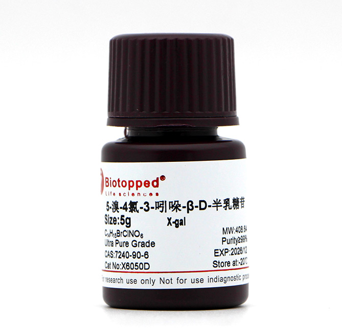X-gal难溶于水,易溶于二甲基甲酰胺(DMF)或二甲基亚砜(DMSO)。